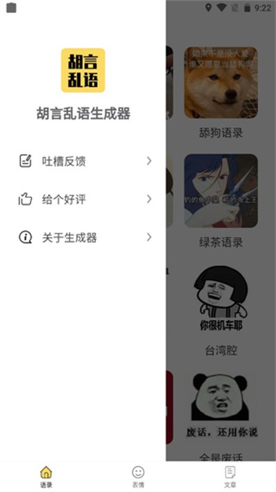 1、语录分类专区覆盖超多趣味文案类目,包含怼人发疯黑化文学、彩虹屁、土味情话、藏头诗等风格,轻松适配各类聊天玩梗场景。
