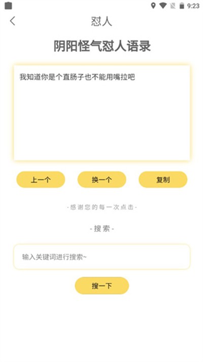 2、点开任意语录分类,即可浏览对应风格文案,支持一键复制、一键收藏,还能快速切换上一条与下一条,也可输入关键词精准搜索专属内容。