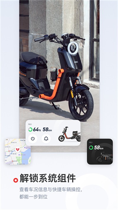 小牛电动全方位赋能日常骑行,解锁智慧便捷的出行方式。绑定车辆后,实时查看电量、预估里程、车况体检、骑行轨迹与骑行数据,集成安防定位、远程操控、智能仪表、骑行导航等实用功能,轻松掌握车辆全部状态,搭配智能服务续费、消息推送设置等贴心内容,界面简洁、操作简单,助力用户安心骑行,畅享多彩城市出行生活。
