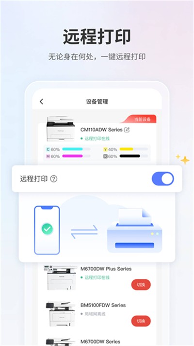 不受地域限制,远程发送打印任务,重要文件及时出纸。