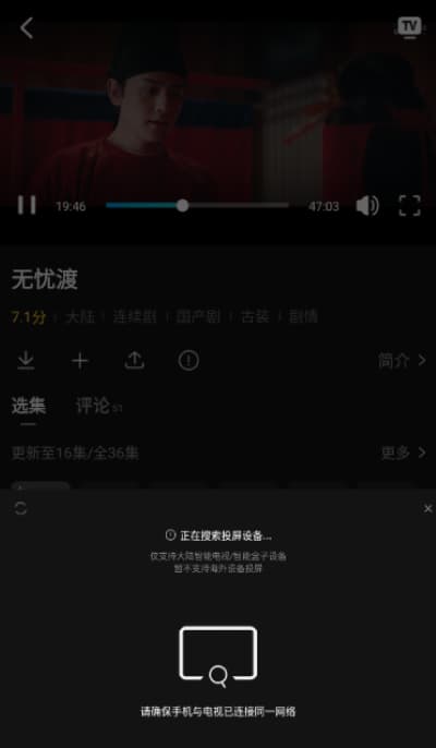 3、确保手机与电视连接在同一WiFi网络下,等待系统搜索设备,找到对应的电视名称后点击连接即可完成投屏。
