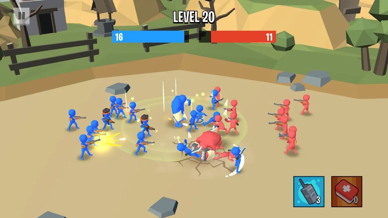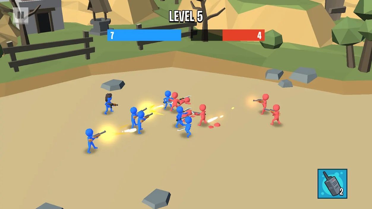 3、己方士兵会自动冲向敌人,与敌方火柴人展开混战,消灭所有敌人即可通关获胜。