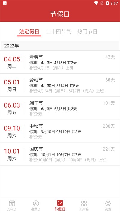 2、完整汇总传统节气以及法定节日资讯,关键日期清晰展示,方便提前规划个人生活安排。