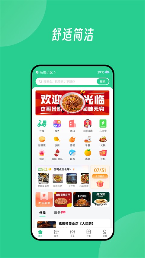 4.为用户带来前所未有的活动,包括平台红包,商家红包,满减活动,商品活动,以及新用户优惠等。