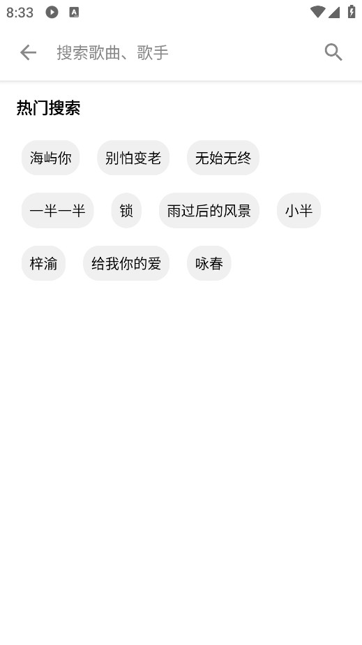 2、点击页面中的放大镜搜索图标,可快速输入关键词查找自己想听的歌曲或歌手。