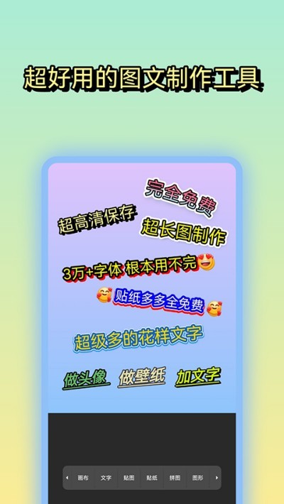 文字图片制作是一款操作简易的图文DIY创作工具,主打文字配图与图片美化编辑,内置海量模板、多样字体、趣味贴纸与对话气泡,自由组合排版创作专属图文作品。可自制头像、手机壁纸、社交配图,去除水印困扰,随时随地动手设计,成品支持快速保存与分享,轻松满足日常图片编辑与创意设计需求。