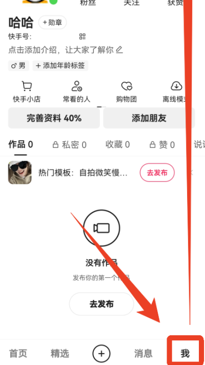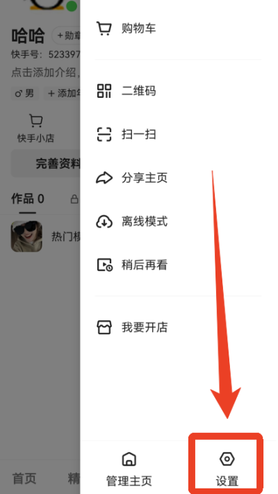 1、登录快手App后点击右下角【我】,进入个人主页,再点击右上角三横线功能按钮进入菜单页面。