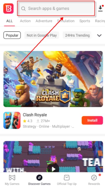 1、启动BuffBuff APP,在首页顶部的搜索框内输入目标海外应用或游戏的名称。