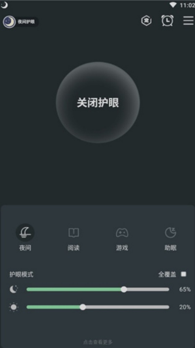 1、下载安装夜间护眼App后,打开软件即可进入主功能界面开始使用。