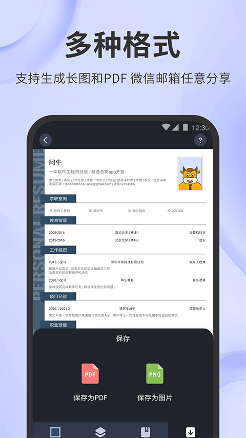 强化简历导出与分享功能设计,支持多格式保存与快速投递,使求职流程更加高效顺畅。
