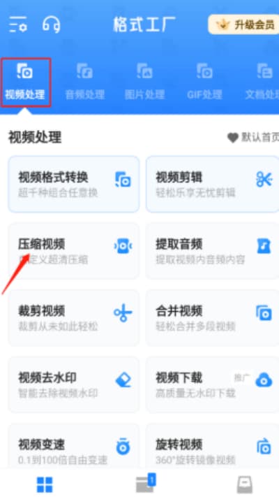 1、在格式工厂转换器的视频处理页面中,点击【压缩视频】功能入口,进入视频压缩操作界面,准备进行文件处理。