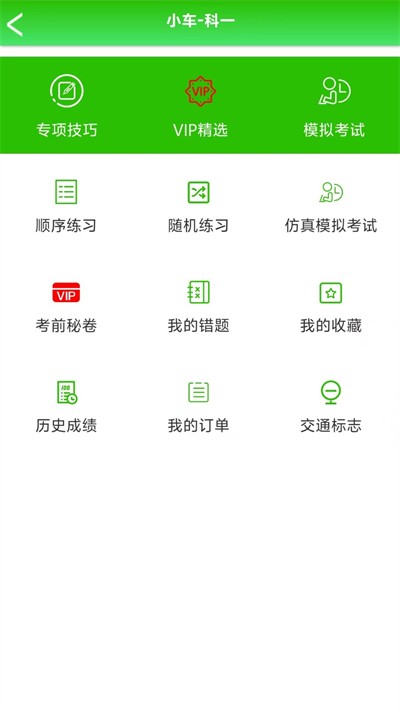 2、进入驾考练习专属界面,可选择顺序练习章节练习题型练习等多种刷题模式,也能使用VIP专项练习和仿真模拟考试功能。