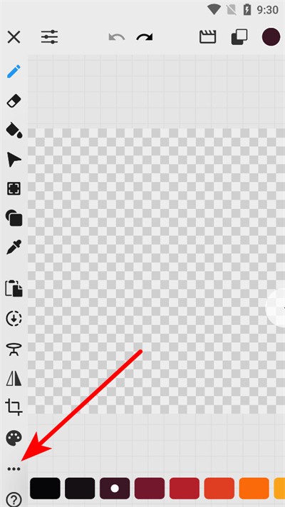 3、进入画布编辑界面后,点击左下角更多按钮,打开快捷操作菜单。