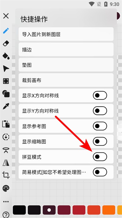 4、在快捷操作中开启拼豆模式,即可使用对应功能进行创作。