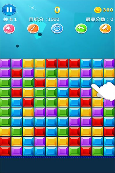 4、消除模式以关卡挑战为核心的玩法设计,通过点击三个及以上相同颜色相连的方块即可完成消除,达到关卡目标分数后即可进入下一关,整体节奏轻松且富有成就感,适合持续挑战与解锁内容。