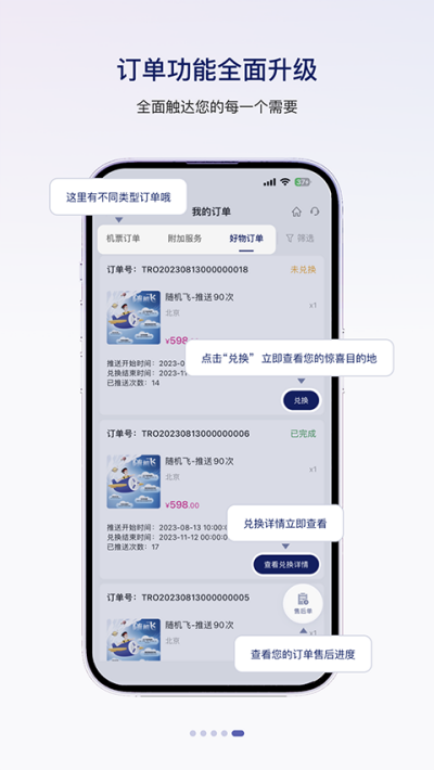 所有订单集中展示,购票、退票、增值服务状态一目了然,方便随时核对与追踪行程进度。