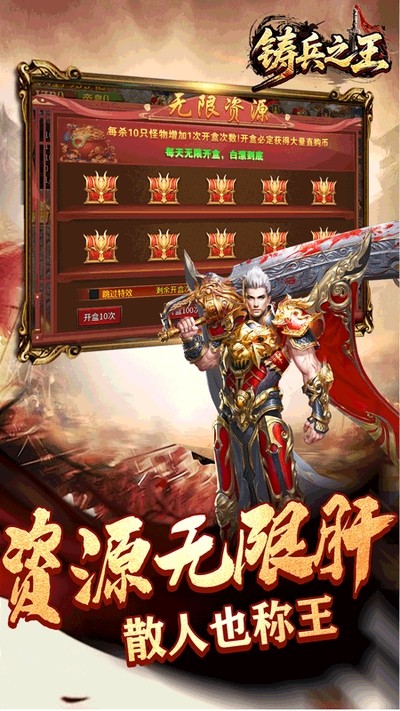 铸兵之王全新白嫖版本重磅上线,主打神器超变单职业传奇玩法。海量福利全程放送,直购币免费领取,海量真充持续赠送,零氪也能轻松玩转。超高爆率自由掉落极品神器,专属战力加成拉满,战斗手感热血爽快。地图玩法丰富,打怪开荒无门槛,搭配多样养成体系,节奏流畅不卡顿。自由打怪激情对战,散人友好无限制,轻松解锁高阶内容,畅享超变传奇的热血乐趣。