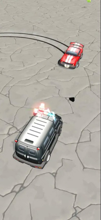 3、按箭头指向控制车辆靠近画面中的油桶,利用油桶爆炸效果,清除周围的追捕车辆。