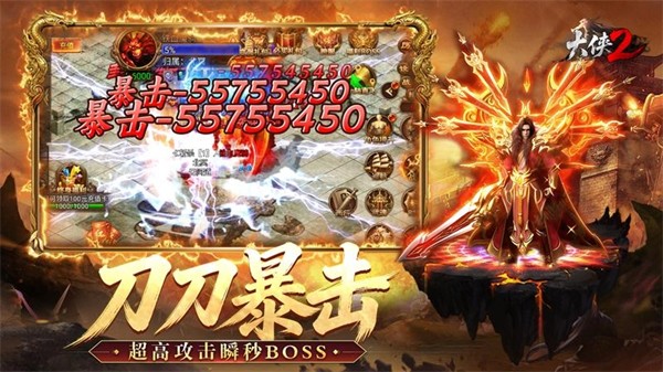 大侠2是一款高爆率、重热血的MMOARPG传奇手游。传奇重燃侠影归来,还原战法道三职业体系,搭配专属合击神技,无限连击爽感拉满。主打刀刀暴击全屏切割百倍爆率,更有千人攻城跨服对战,福利BOSS等全新玩法。兄弟并肩征战,重现当年热血时刻。全服无VIP门槛上线福利拉满,稀世羽翼高级武器,珍稀材料免费送。绿色打宝环境装备全靠爆,小怪也能出终极。