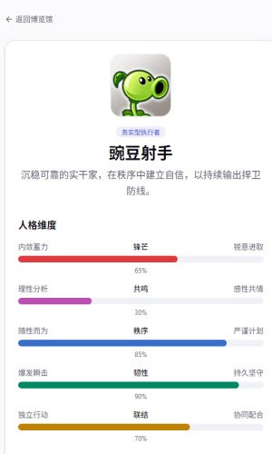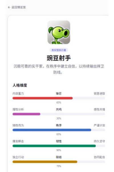 将MBTI16种人格与PVZ经典植物角色精准匹配,角色形象生动鲜活、好记易懂,让专业人格测评更具趣味性。
