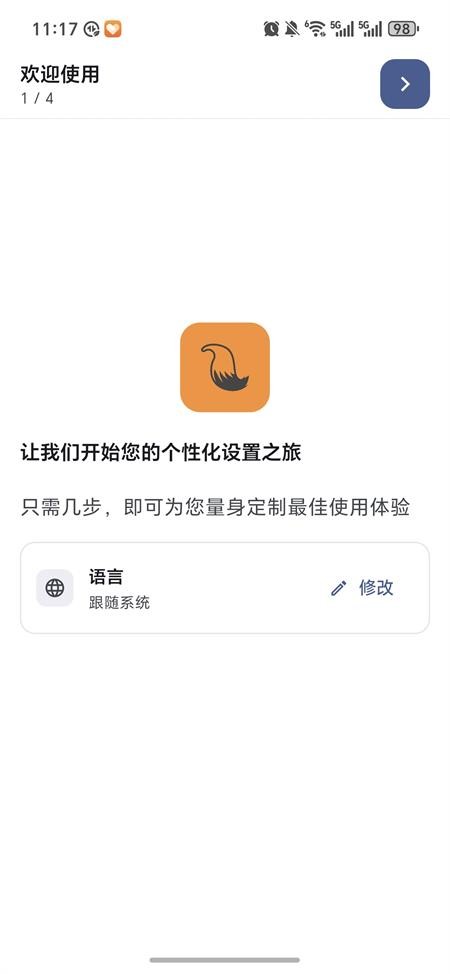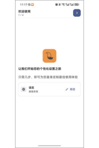 1、打开软件进入页面首屏呈现【语言】选项,点击右侧【修改】打开语言列表。