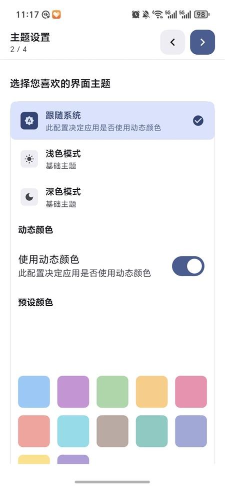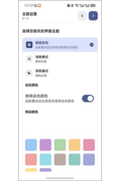 2、进入主题设置页面,选择心仪的页面效果,点击下一步继续。