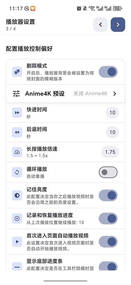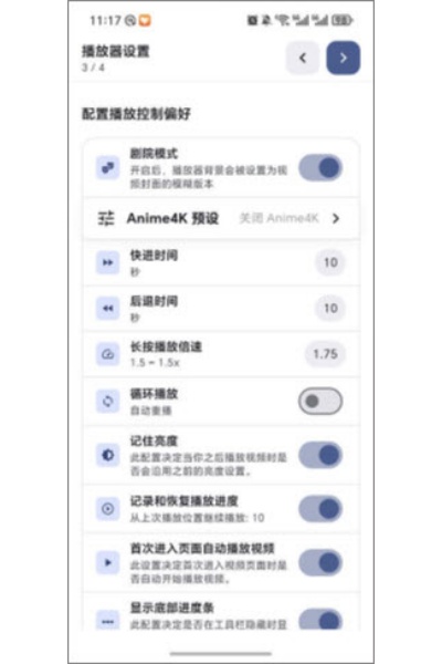 3、进入播放器设置,根据个人需求调整各项参数,完成后进入基础设置。
