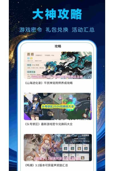 同步更新全网热门手游的版本公告、活动福利、版本玩法等内容,让玩家第一时间掌握游戏最新动态。