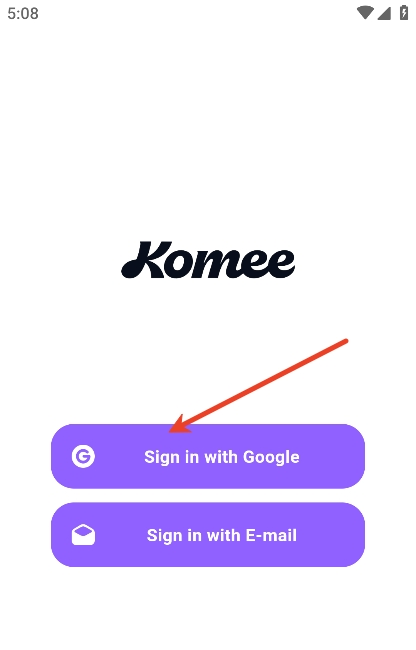 1、打开Komee AIapp,可使用谷歌账号登录注册账号。