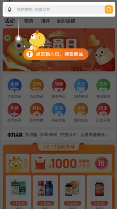 3、在首页搜索商品,支持语音、药品简称、药品名称及二维码扫描等方式。