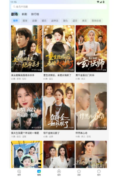 2、进入剧场页面,可查看各类热播短剧作品及分类。