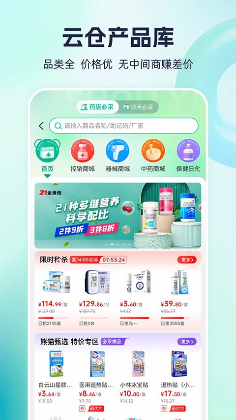 整合多品类药品资源,使采购选择更加多样化,满足不同场景下的用药与补货需求。