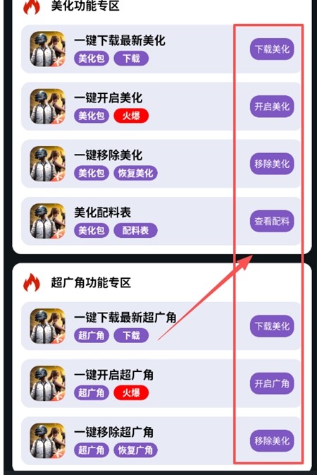4、继续向下滑动页面,还可以根据需要一键开启美化效果和广角功能,让游戏画面体验更佳。
