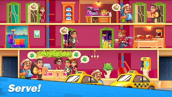 1、以酒店全流程经营为核心结构,覆盖入住、服务、退房与清洁等环节,形成完整运营链路,使整体体验更贴近真实酒店管理逻辑与节奏。