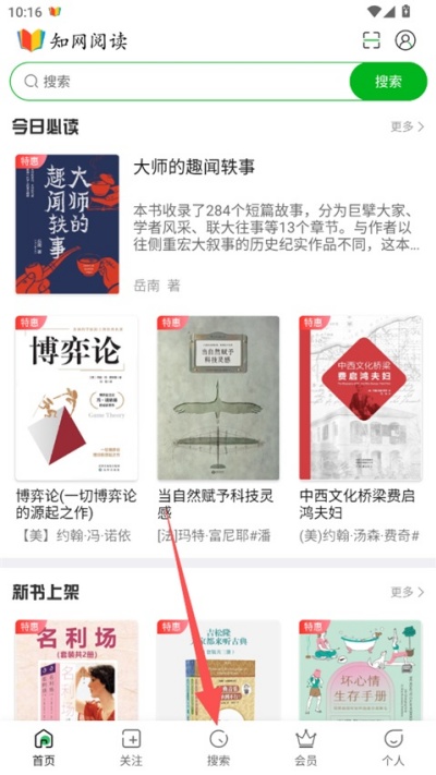 1、打开知网阅读App,点击底部【搜索】进入功能页面。