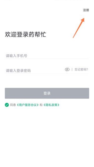 1、打开药帮忙App首页,点击注册入口进入账号创建流程。