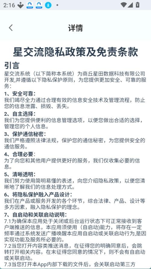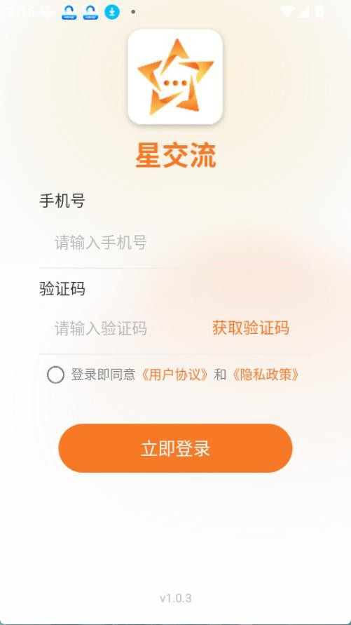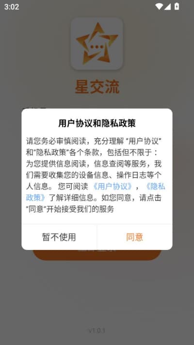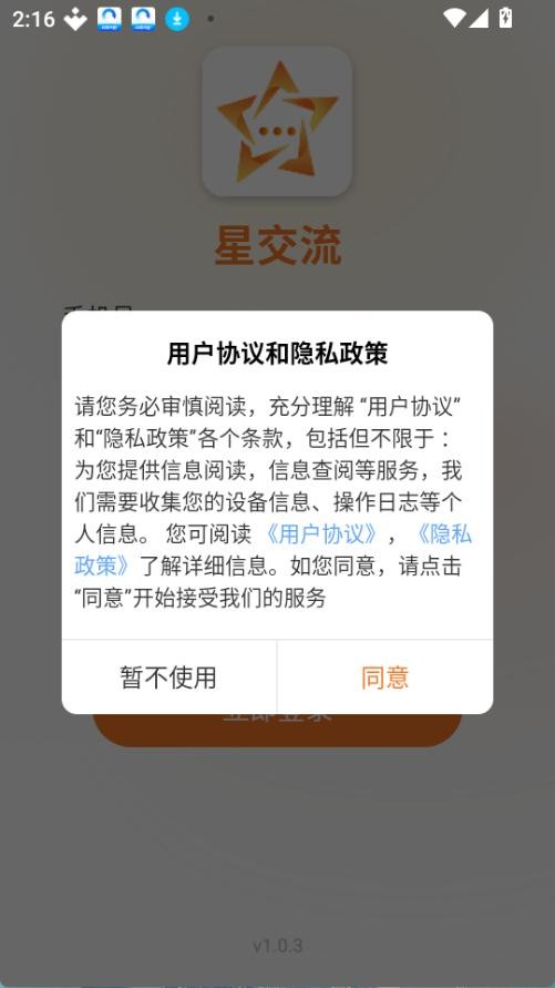 1、打开 星交流 后,进入应用界面并点击“同意”相关授权提示。
