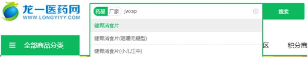 2、通过搜索栏输入关键词、首拼字母或厂家名称查找药品,也可通过分类导航筛选商品。