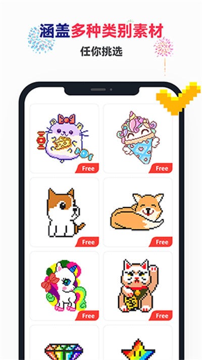 2、内置丰富卡通像素图案,题材多样且持续更新,保持内容新鲜感。