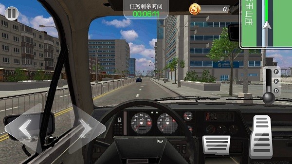 2、游戏主要分为任务模式与自由模式两种玩法,其中任务模式为核心推进方式,点击后即可开启完整驾驶挑战流程,体验系统化任务引导与城市探索内容。