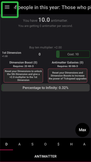 2、通过购买与升级维度可提升整体产出效率,并借助Tickspeed机制加快全部维度的运行速度。