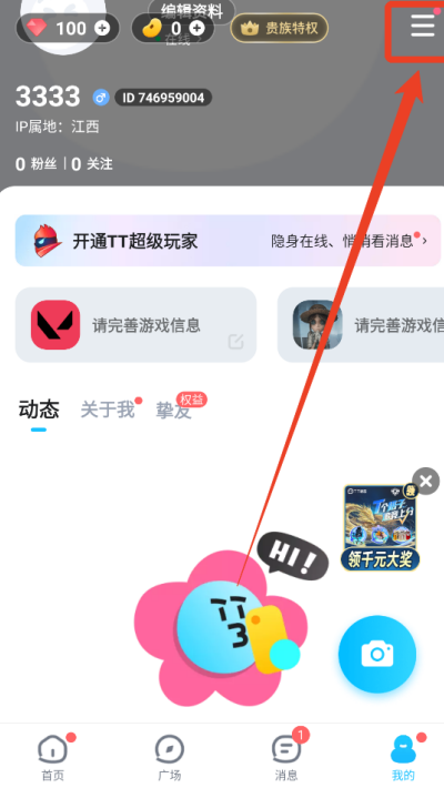 1、进入个人“我的”页面后,点击右上角三条横线进入功能菜单。