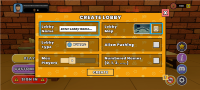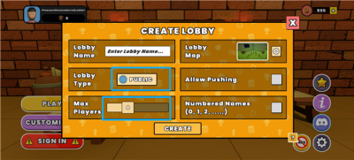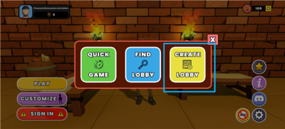 2、选择 CREAT LOOBY 进入房间创建功能界面。
