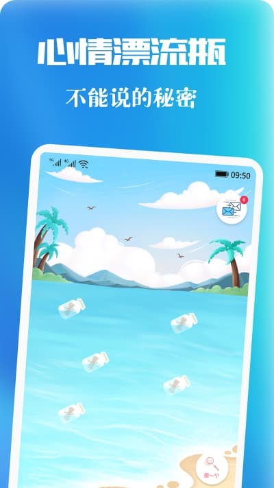 3、进入首页后即可看到“漂流瓶”功能,随时可以体验互动,去捞一个试试吧。