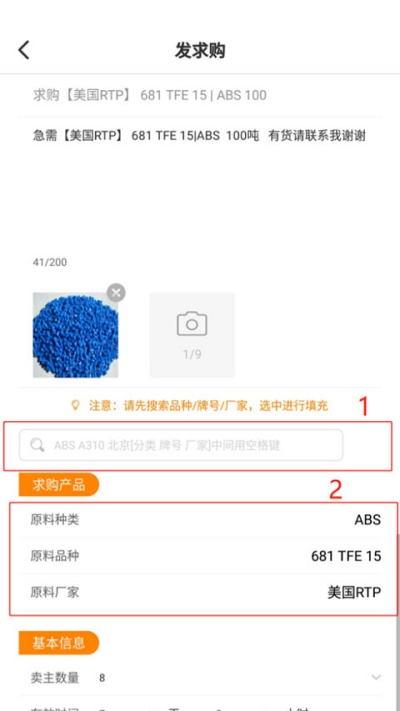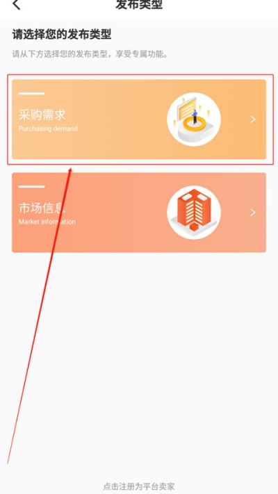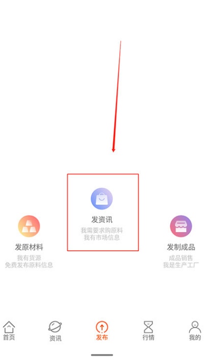 2、在发布类型中选择“发资讯”模块,然后点击“采购需求”进入需求填写页面。