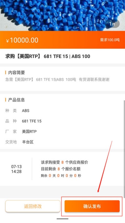 1、进入金塑宝App主界面后,点击底部或首页的“发布”入口进入信息发布功能区。