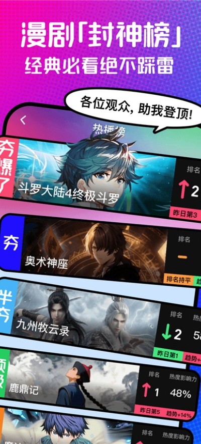 整合多类型漫剧资源入口,通过单一平台即可浏览不同风格作品,提升内容获取便捷性与观看效率。