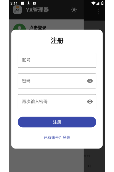 4、输入注册账号和密码,完成填写后即可完成注册登录。
