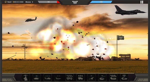 2、载具与空中支援调用功能,可在关键阶段释放坦克编队或空中打击,对敌方阵型造成压制效果。
