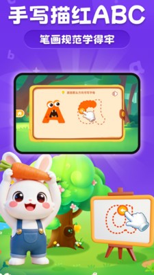 魔兔英语早教围绕英语启蒙教育构建学习体系,以字母认知与基础词汇为核心内容。学习路径从26个字母逐步展开,结合动画展示与语音引导,帮助建立基础语言认知。书写训练通过笔顺演示与描红练习进行分阶段强化,使学习过程更加稳定。单词模块以生活常见词汇为基础,结合图片与发音进行记忆训练。互动练习以小游戏形式呈现,增强参与感与重复练习效果。整体流程以循序学习为主线,适合儿童初期语言启蒙阶段使用。